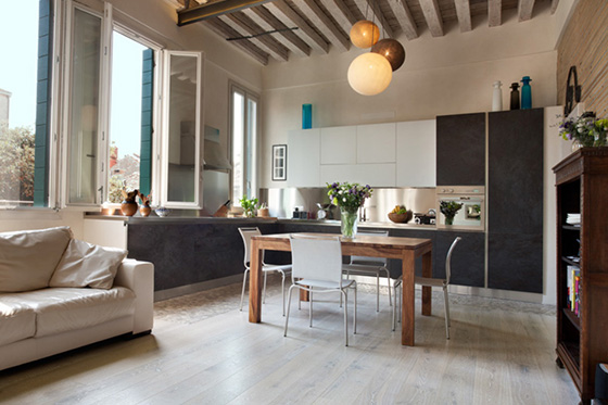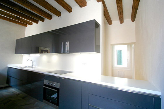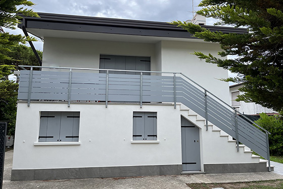 L’intendimento è stato quello di mettere in luce una struttura architettonica tipica di un palazzetto della venezia minore senza sconvolgere il suo assetto tipologico. Si è prediletto il gioco volumetrico per ampliare la sensazione spaziale e recuperare il vano sottotetto come zona abitabile. la scala, in legno e acciaio, funge da elemento di collegamento e determina una forte impronta d’arredo. per esaltare il connubio volumi - luce sono state usate finiture in velatura di calce pura in contrasto con il legno d’abete e l’acciaio.