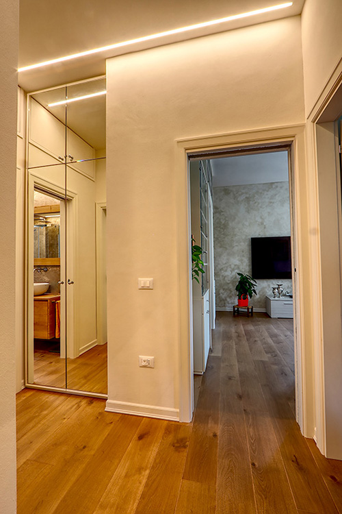L'intervento ha interessato ogni aspetto dell'unità, dalla statica agli impianti fino ad ogni minimo dettaglio relativo all'arredamento. L'effetto finale è quello di uno spazio immediatamente accogliente: casa.