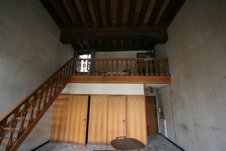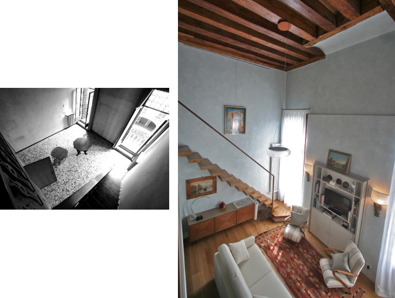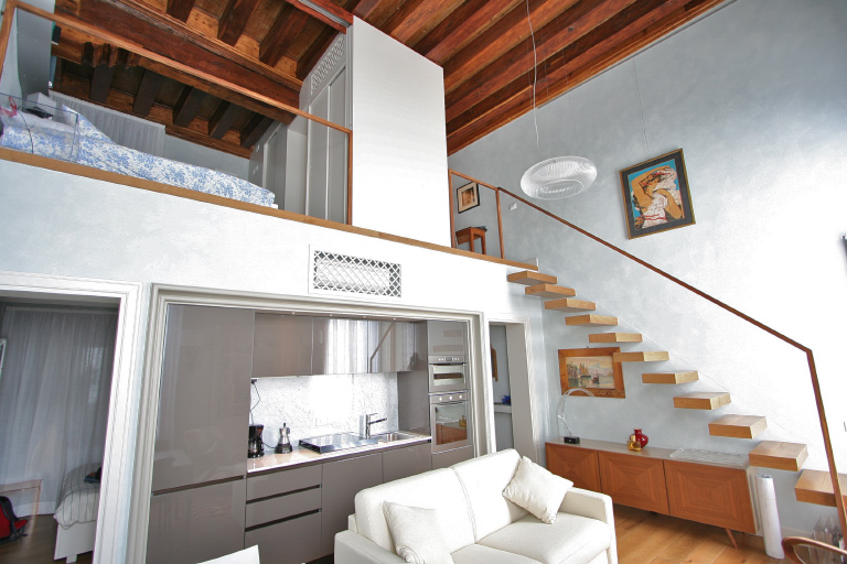 L’appartamento si presentava come un unico vano alto con soppalco, sotto il quale si sviluppavano il servizio igienico e la cottura.