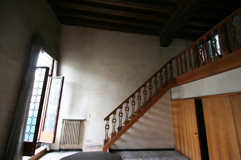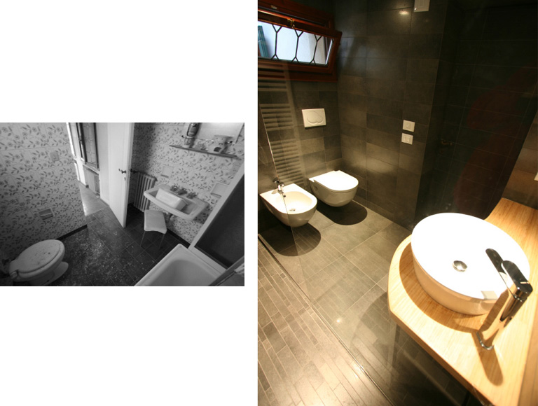 Una scala con balaustra lignea metteva in comunicazione i due piani. L’ambiente si presentava sbilanciato nel gioco dei volumi, poco fruibile per la gestione degli spazi ed in pessime condizioni igienico sanitarie.