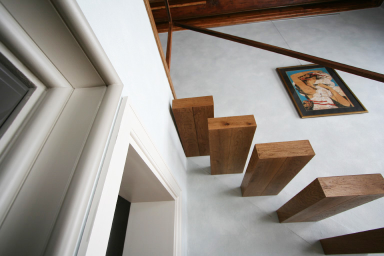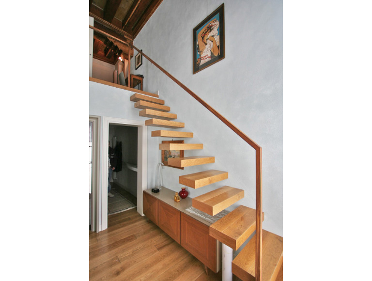Per ampliare la sensazione di spazialità, visti gli ambiti, era necessario realizzare una scala molto aerea.