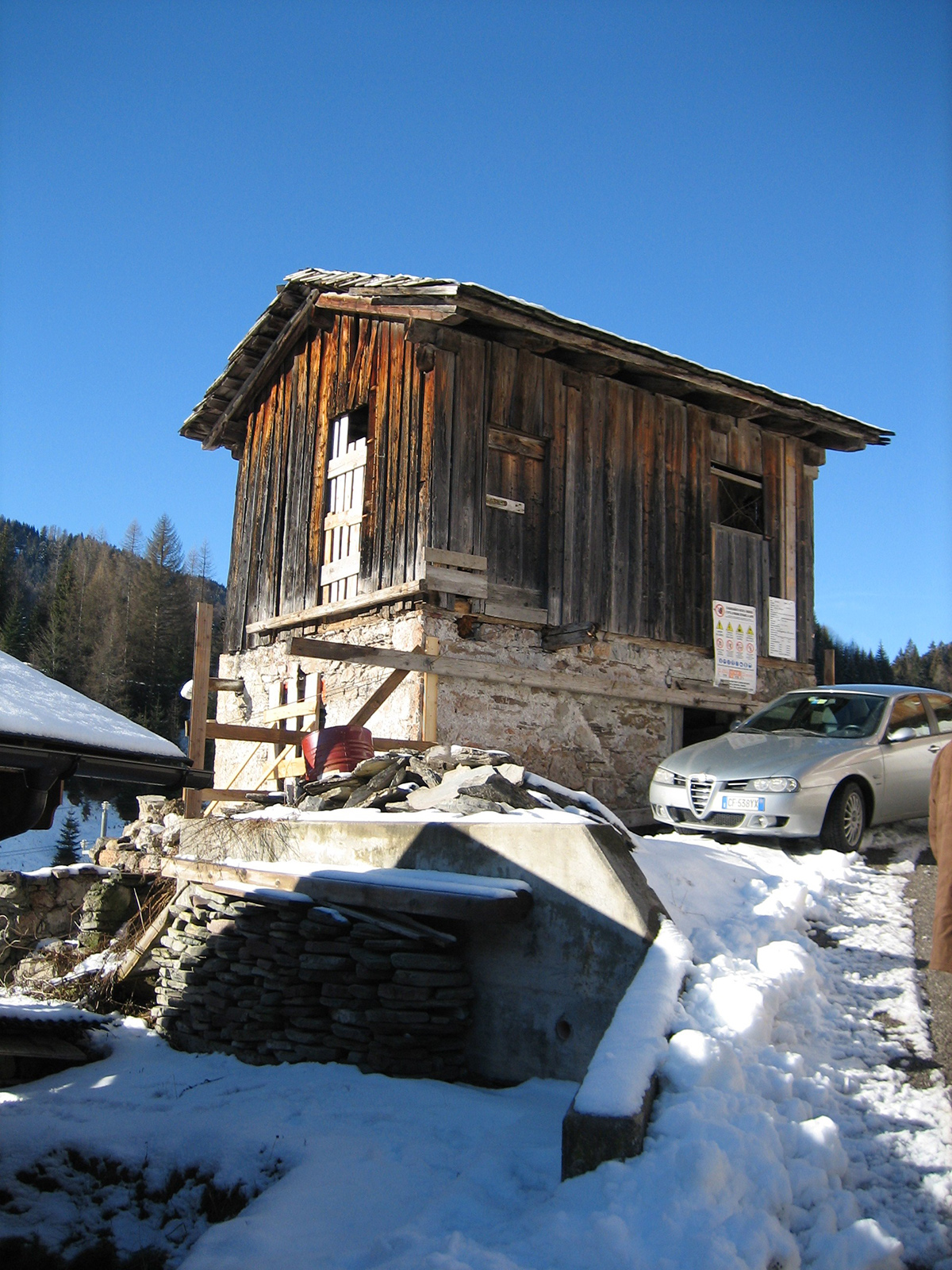 Una sfida: trasformare un vecchio stavolo (piccola stalla tipica della Carnia e del Cadore) nell’incantato paese di Sauris in un piccolo appartamento. Una struttura fatiscente in pietrame e legno, spazi ristrettissimi, vincoli ambientali e comunali all’interno dei quali destreggiarsi, un’architettura “ingombrante” con cui doversi confrontare e fare i conti. Con la collaborazione fattiva di tutti quanti hanno partecipato alla ristrutturazione, con demolizione e ricostruzione integrale, è stato possibile realizzare un’unità abitativa che, tenendo conto delle esigenze antisismiche, termiche, tecnoligiche, di supoeramento barriere architettoniche, … risulta funzionale e perfettamente inserita nell’ambiente montano così delicato della valle saurana.