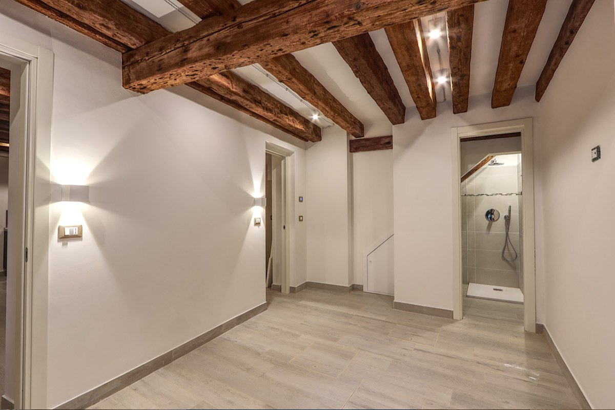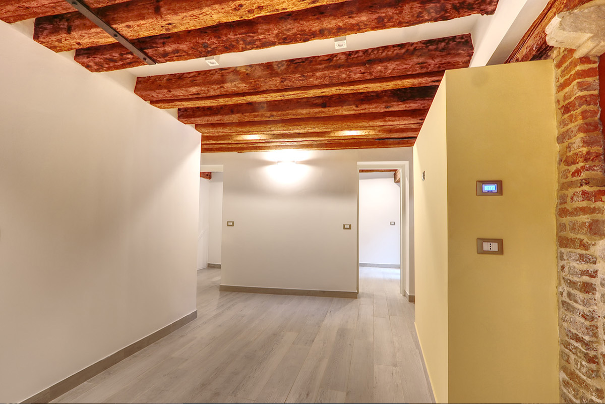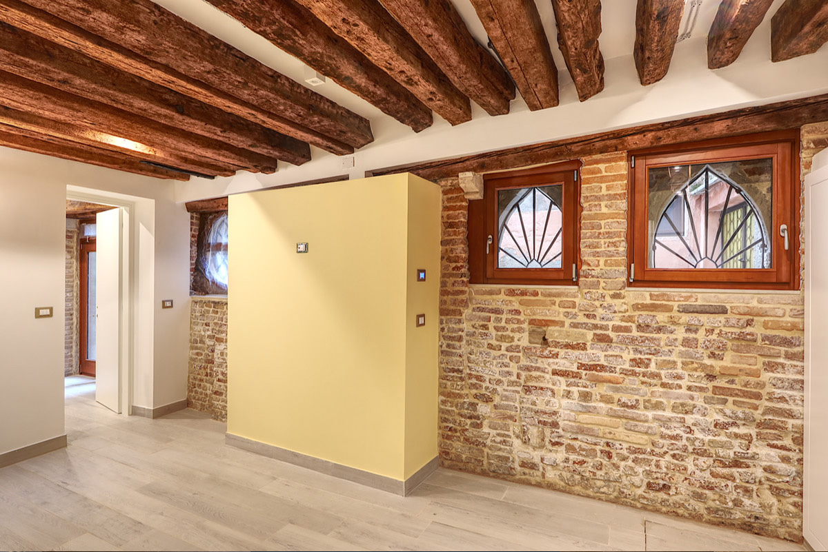 Un vecchio magazzino abbandonato da anni. Un piano terra di un palazzo protogotico veneziano. La richiesta è stata quella di risanare le strutture mettendole in mostra e ricavare un mini appartamento. Particolare attenzione è stata posta alla delicatezza delle strutture e alla riapertura di quei fori architettonici che nel tempo erano stati chiusi e avevano creato insalubrità.