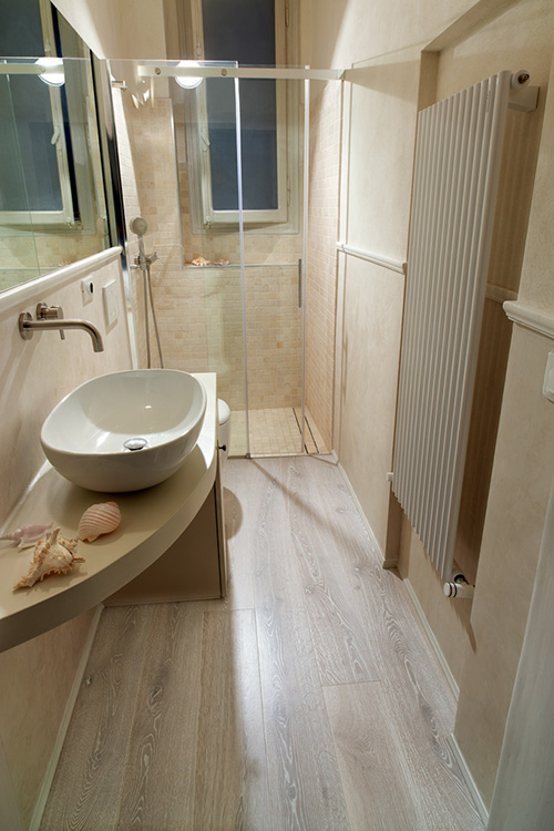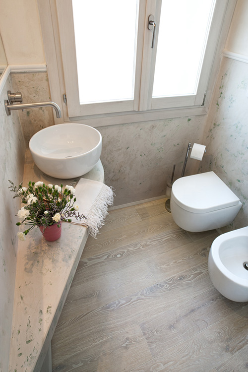 Una casa vecchia in tutti i sensi nel cuore di Venezia. Un volume ed una luce con cui sbizzarrirsi. Sono rimasti i muri perimetrali, il pavimento ed il solaio soprastante. Il resto è stato completamente rinnovato sia materialmente che come concetto distributivo: la zono giorno portata a sud per dare la piena insolazione del sud, la zona notte e i servizi a nord per isolare le camere dal caos turistico. Si sono utilizzati materiali della tradizione veneziana: legno di rovere, velature di calce, restauro e messa in luce delle vecchie strutture lignee degli scorzoni.